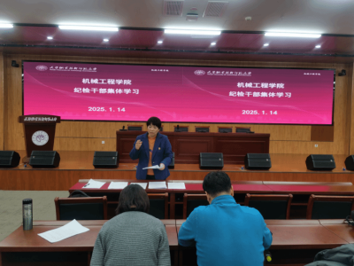 纪委在师资培训楼二楼报告厅组织学院全体纪委委员、党支部纪检委员、纪检专员、纪检监察监督员进行2025年度第一次集体学习,专题学习贯彻二十届中央纪委四次全会精神。会议由学院纪委书记姚丽华主持。