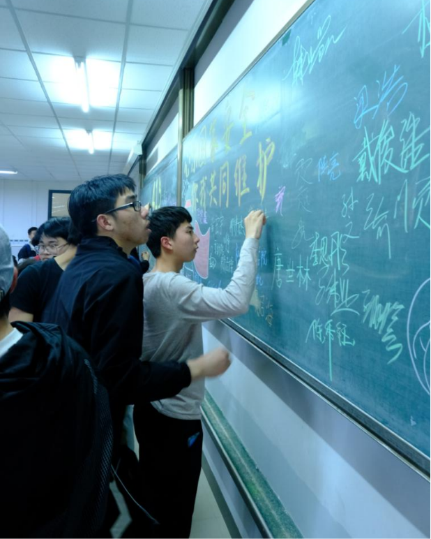 会后,与会师生踊跃上台写下“心系国家安全,你我共同维护”的诺言。