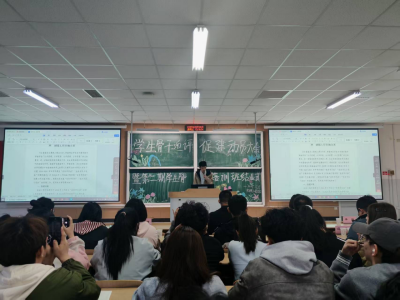 在第二教学楼202室举办学生骨干迎评促建动员大会暨第二期学生骨干培训班结业式。学院党委副书记韩树明、全体辅导员及学生骨干代表共计200余人参会。院团委书记、学工办主任李强主持会议。
