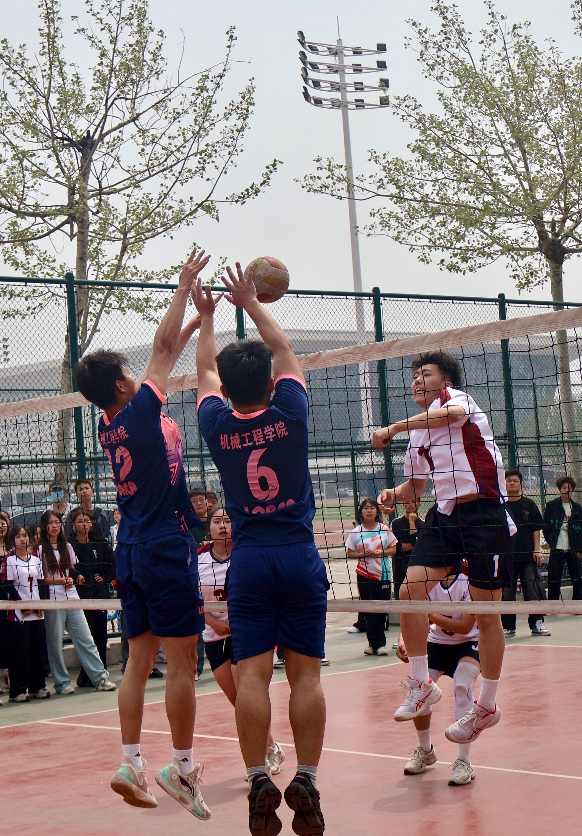 决赛现场战况跌宕起伏,机械学院排球队进入状态更快,打得气势如虹,首局比赛攻防两端发挥出色,多点开花,以15:10先下一城。次局对手调整状态,拼发球抓机会,以15:12扳回一城,将大比分扳平。