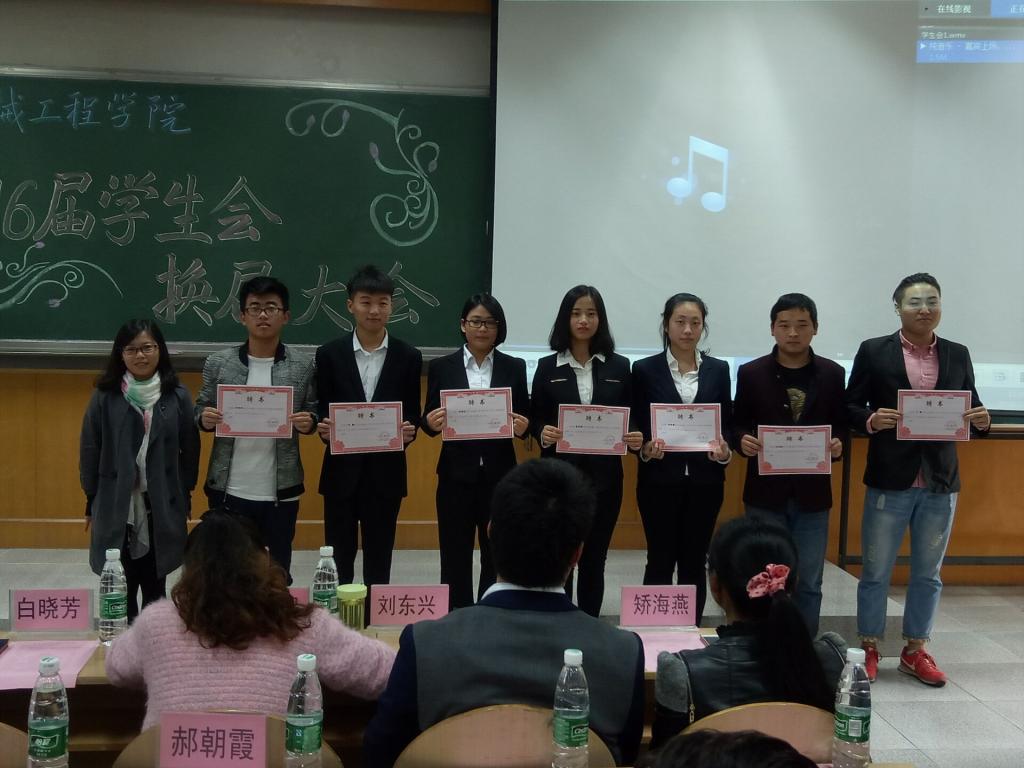 在阶梯教学楼203室召开了第十六届学生会换届大会。院党委副书记刘晶,团委书记戚霄及全体辅导员,各学院社团代表、班级代表及学生会代表参加了活动。