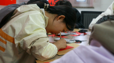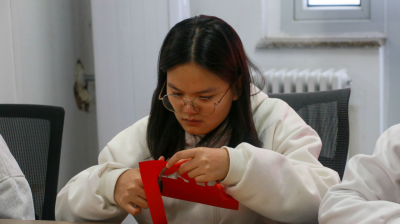活动现场,同学们在老师的指导下,手持剪刀、红纸,凝神静气、指尖翻飞,创作了柳叶、纸鸢、传统纹样等一幅幅精致的剪纸作品,既展现了清明时节的民俗特色,也彰显了同学们的动手能力与无限创意。