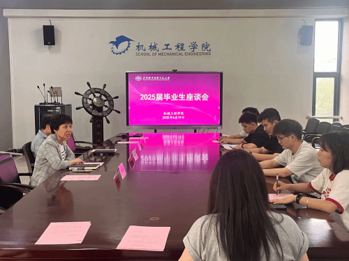 在逸夫楼301举办2025届毕业生座谈会,学院党委书记顾红欣、院长戚厚军、副院长赵巍、毕业班辅导员及毕业生代表参会。会议由顾红欣主持。