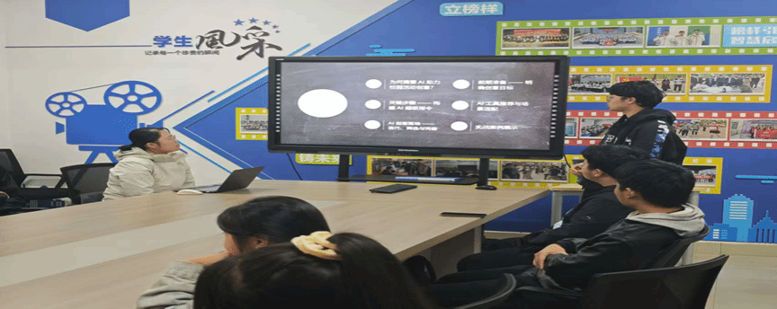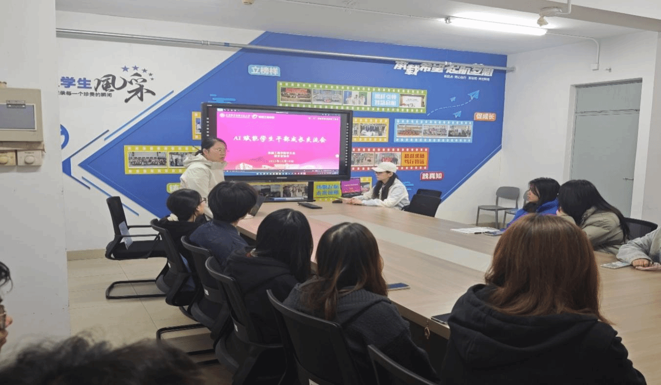 不同部门的学生干部分享他们在各自岗位上应用AI工具的实践经验与深度思考,现场气氛热烈,思维火花不断碰撞。