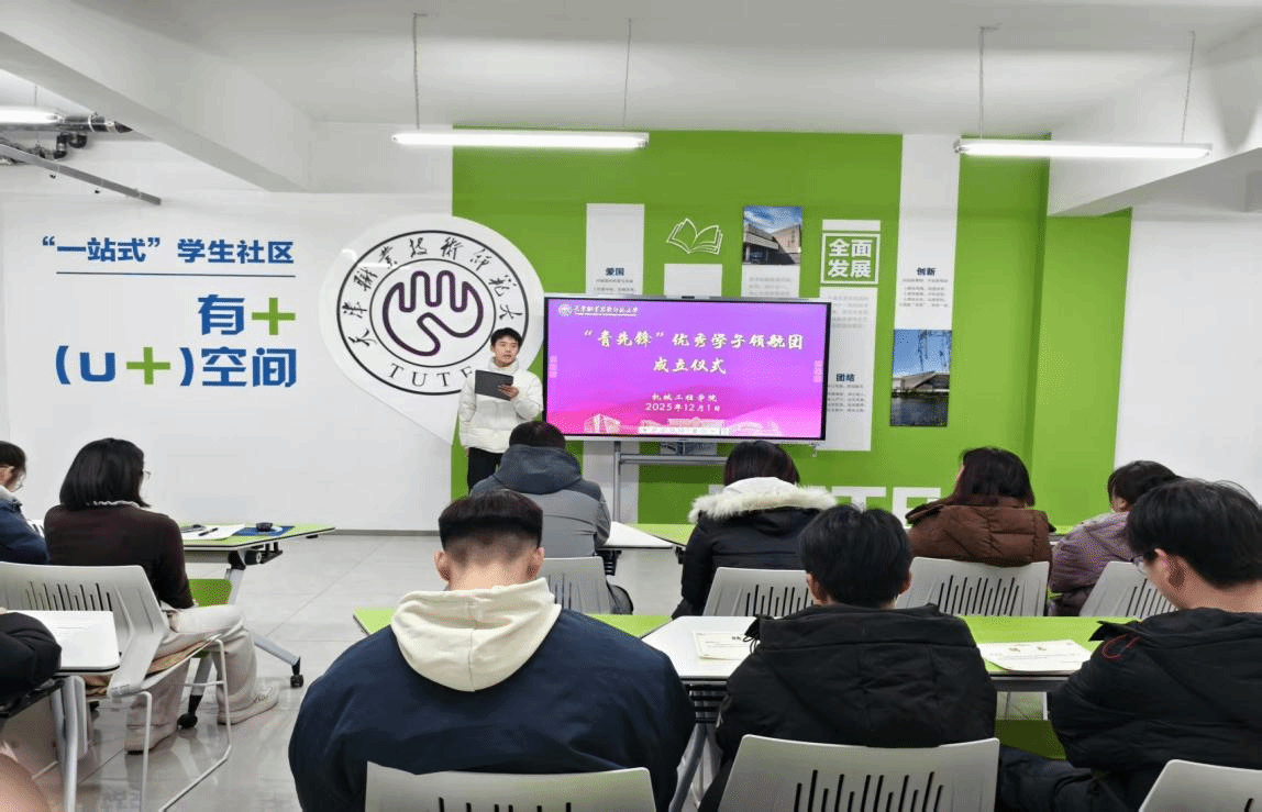 在东区U+空间举行“青先锋”优秀学子领航团(以下简称“领航团”)成立仪式。学院党委副书记刘娜,2025级新生辅导员范耘硕、袁梦、任畅及新生班级班长共同参加。