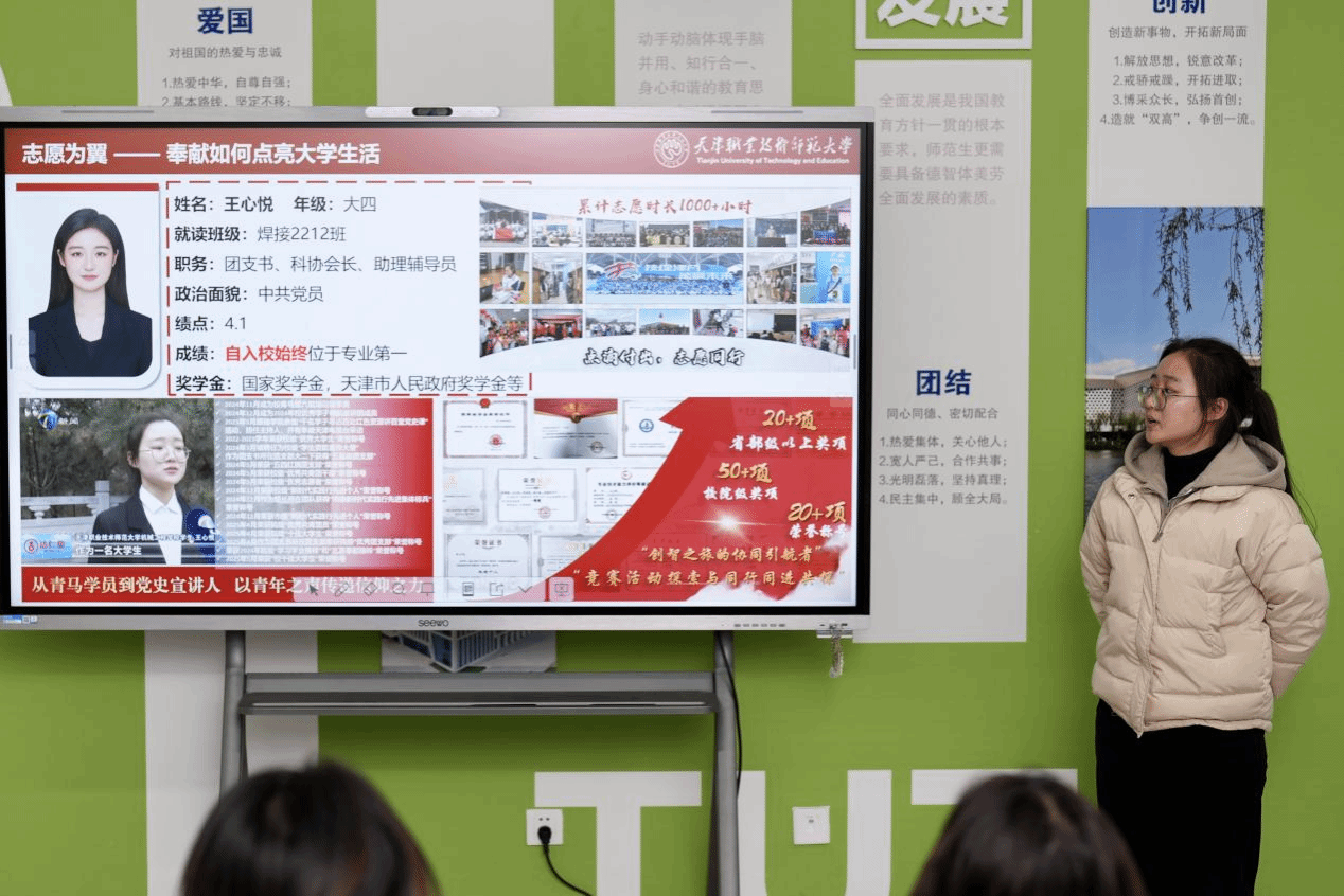 接下来,仪式进入授聘环节。学院正式宣布“青先锋”优秀学子领航团成立,并为18 名入选成员颁发聘书。据悉,这18名成员均在国家奖学金、天津市人民政府奖学金、天津市优秀学生、优秀学生干部等重要评选中脱颖而出,是学院在学习成绩、综合能力与责任担当方面的标杆代表,具备丰富的学业指导、竞赛实践和成长规划经验。