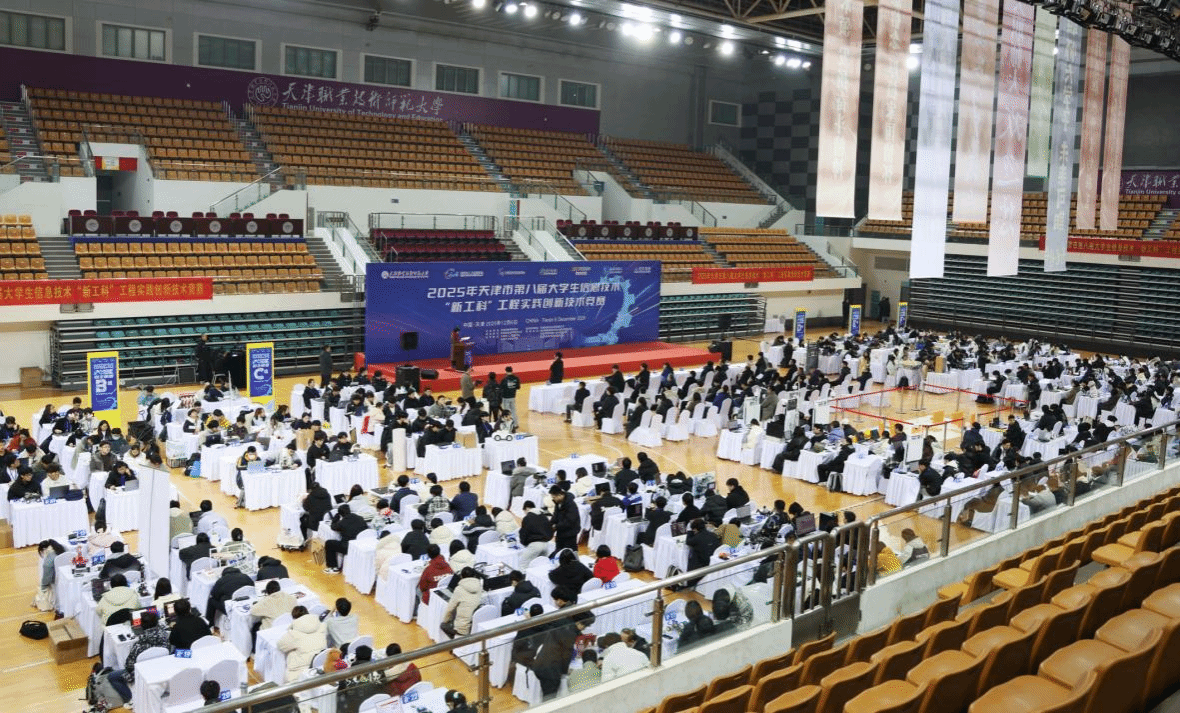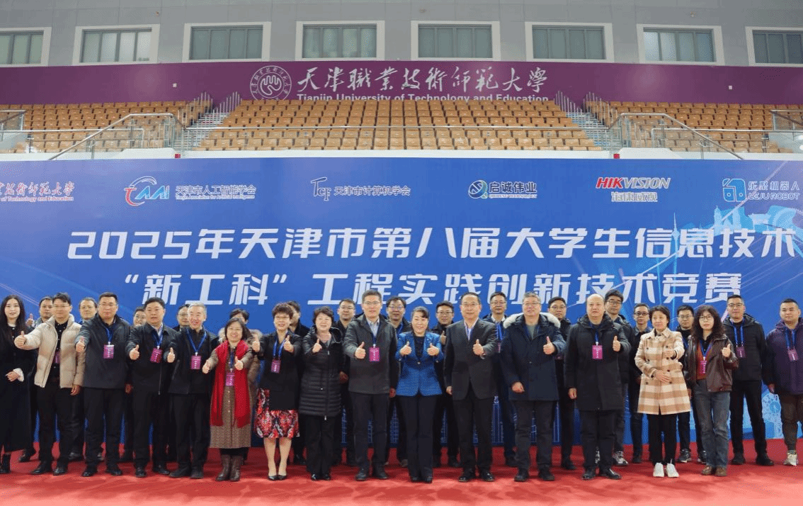 承办,天津市人工智能学会、天津市计算机学会支持协办,天津启诚伟业科技有限公司携手杭州海康威视、乐聚(深圳)机器人、武汉凌特电子等企业联合赞助,汇聚多方力量,共同打造新工科教育成果展示与创新人才培育的重要平台。比赛以“产教融合”为核心纽带,吸引了来自天津大学、南开大学等34所院校的943支队伍同台竞技,覆盖本科与高职各层次,参赛队伍总数较往届增长14%,竞赛规模与影响力均创历史新高,成为津门新工科人才比拼的“巅峰舞台”。