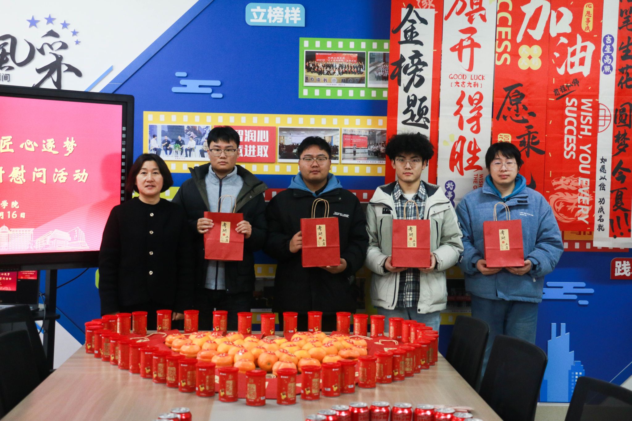 在笃行坊“一站式”学生社区开展“研途相伴 匠心逐梦”2026届毕业生考研慰问活动。学院全体院领导深入学生社区一线,为全力备战考研的学子送上冬日暖心关怀与专属礼包,为考研征程注入温暖力量。