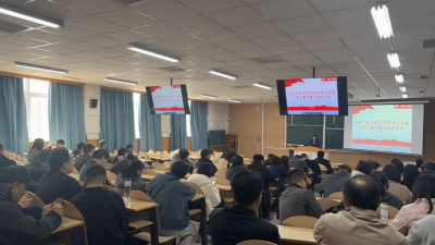 在阶梯教学楼203室召开2026年研究生招生复试工作培训暨纪法警示教育大会,全院近百名教师参加会议。