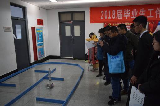 毕业生课堂技能实操工件和课外科技创新作品,询问学生参与制作的华北五省机器人竞赛一等奖作品的机械原理和设计构想,兴致勃勃观看获得全国工程能力综合竞赛一等奖的无碳小车的现场展示。招聘代表对毕业生综合能力给予充分肯定。