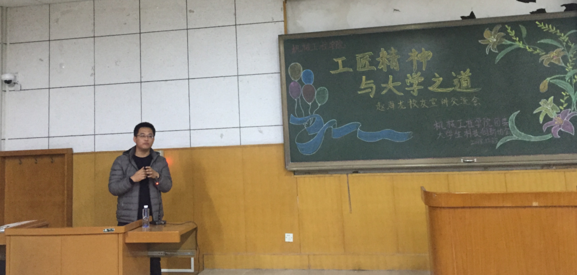 近期开展优秀校友进学院系列活动。12月25日,学院召开第三期“立德树人——铸教育之魂”学习贯彻全国教育大会精神优秀校友分享会。学院特邀机制0914班优秀校友赵海龙分享交流自己的大学成长之路。械工程学院团委书记戚霄以及科协代表学生参加活动。