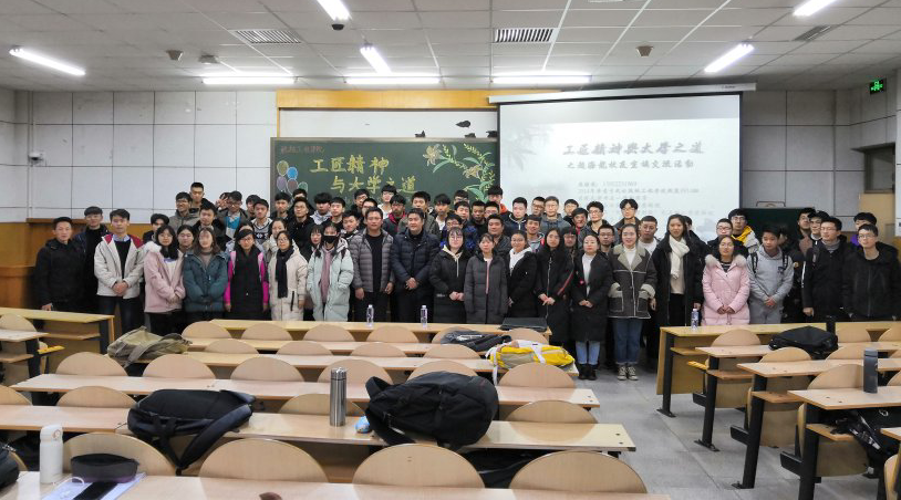 赵海龙以“工匠精神与大学之道”为题,介绍了自己的比赛经验。为学弟、学妹们,重新塑造大学之路,构建“新型”的大学成长之路提供建议。他以“未来是自己给的”为题,解读“工匠之魂,存于匠心”的匠心精神,分析了大国工匠是怎么成就的,引导同学们从最小的事情着手,坚持目标不放弃,在基本专业课上功夫;在自己的能力培养上,下功夫;在上机实操上下功夫。希望学弟学妹们能够努力成为德智体美劳全面发展的社会主义建设者和接班人,为实现中华民族伟大复兴的中国梦贡献自己的青春力量。