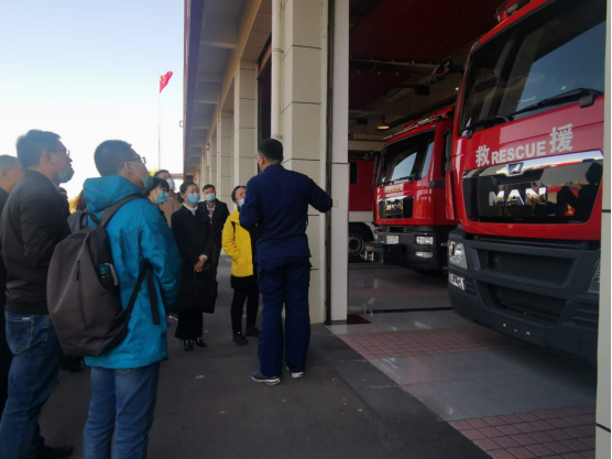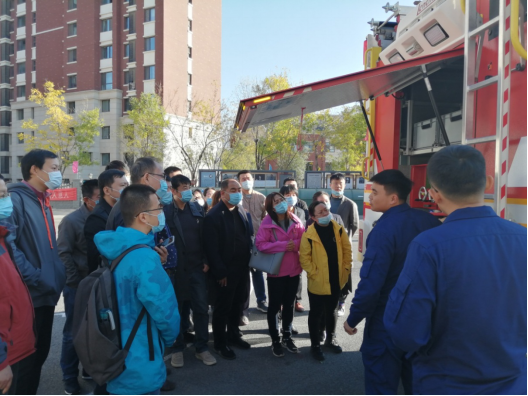 讲座后,教师们在消防员的带领下参观了消防车,了解不同类型的消防救援车的功能。