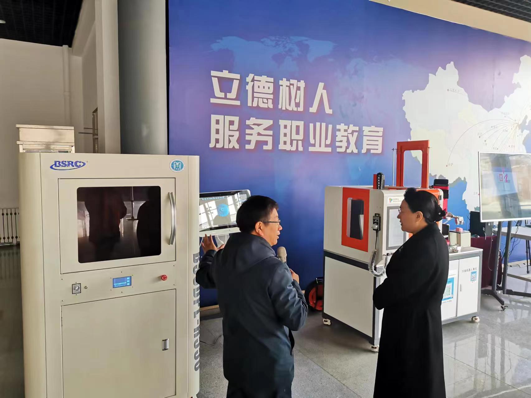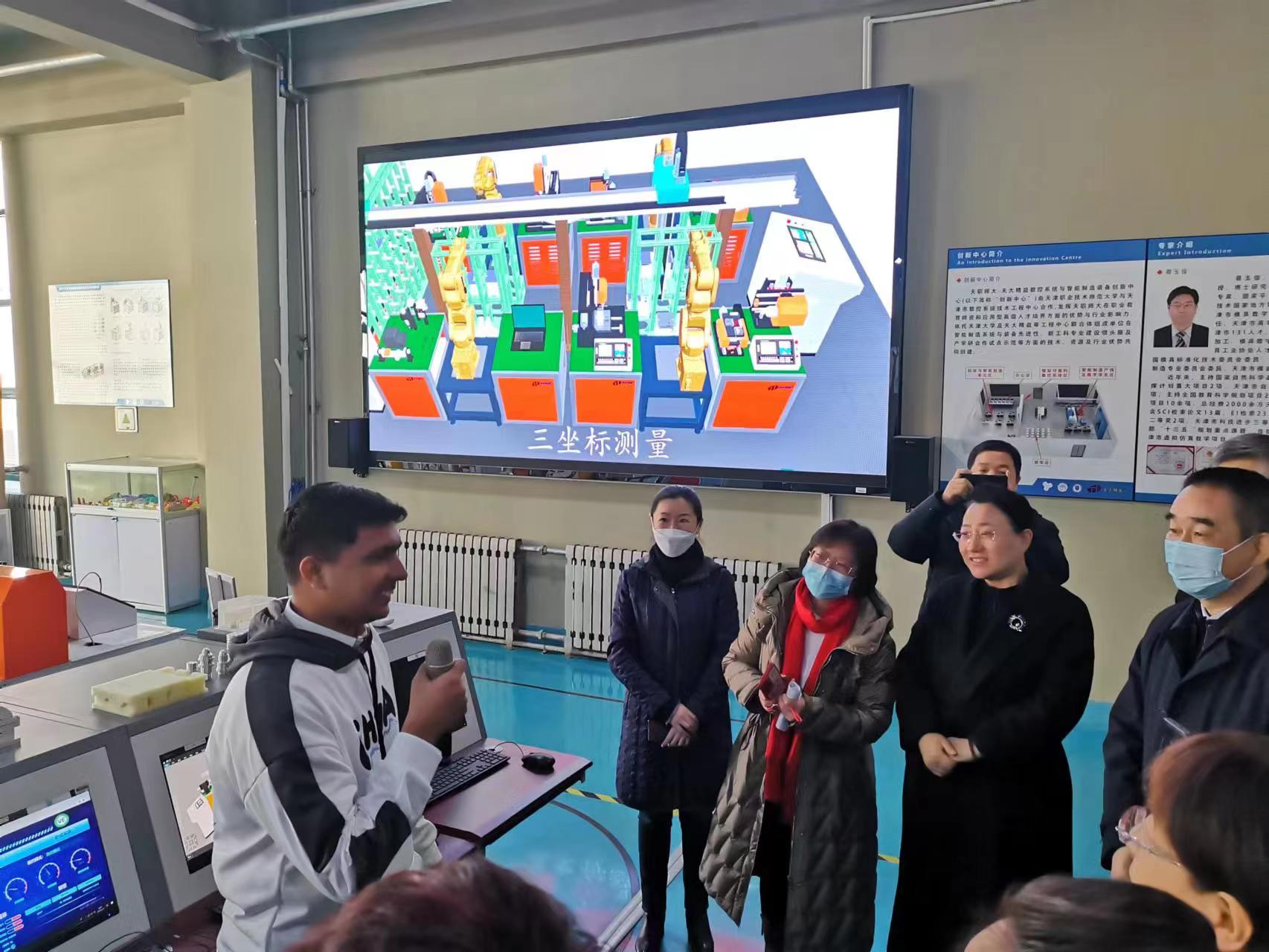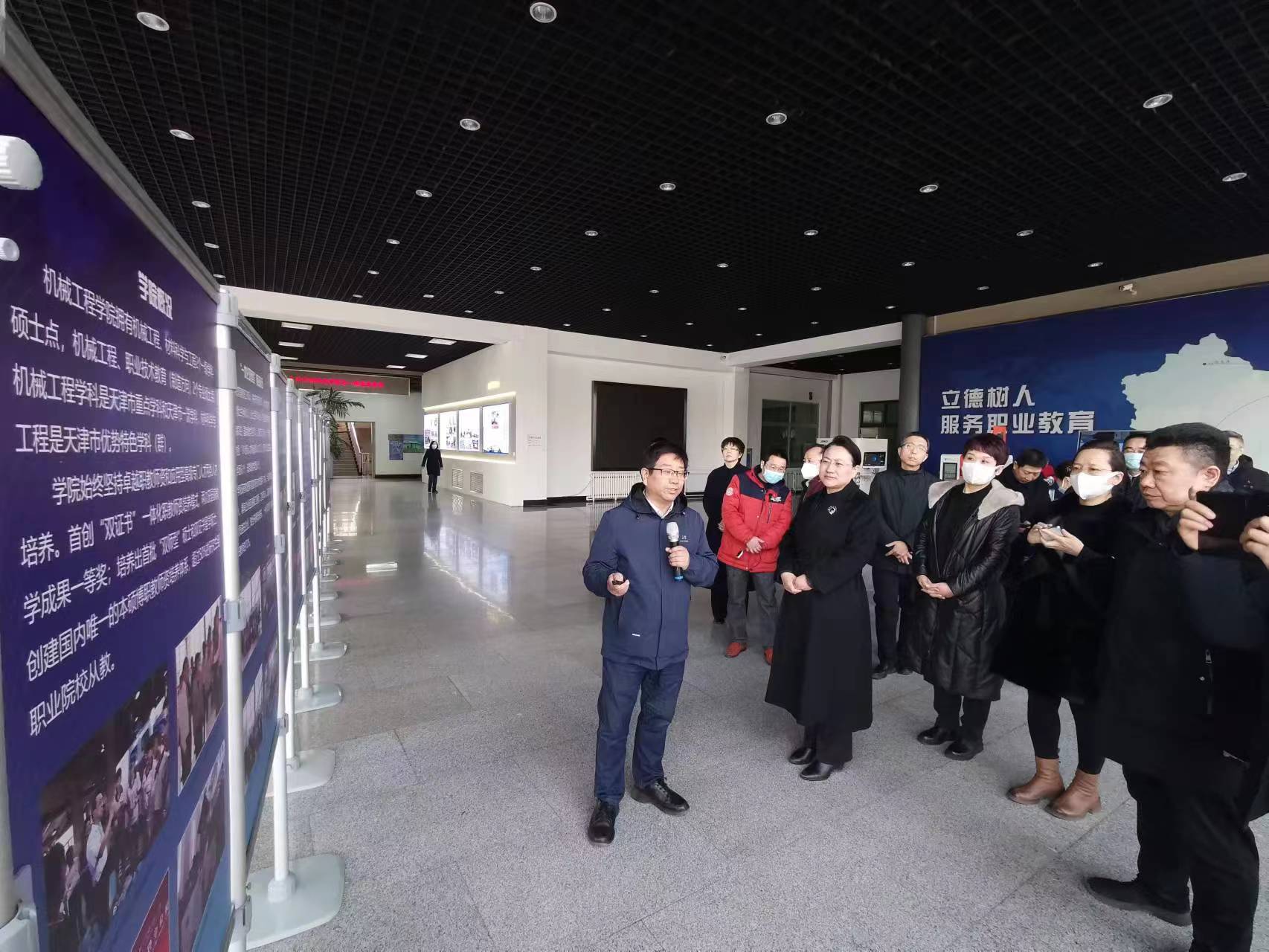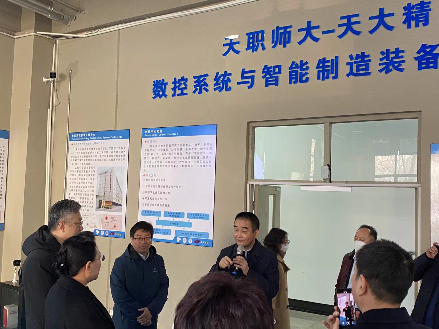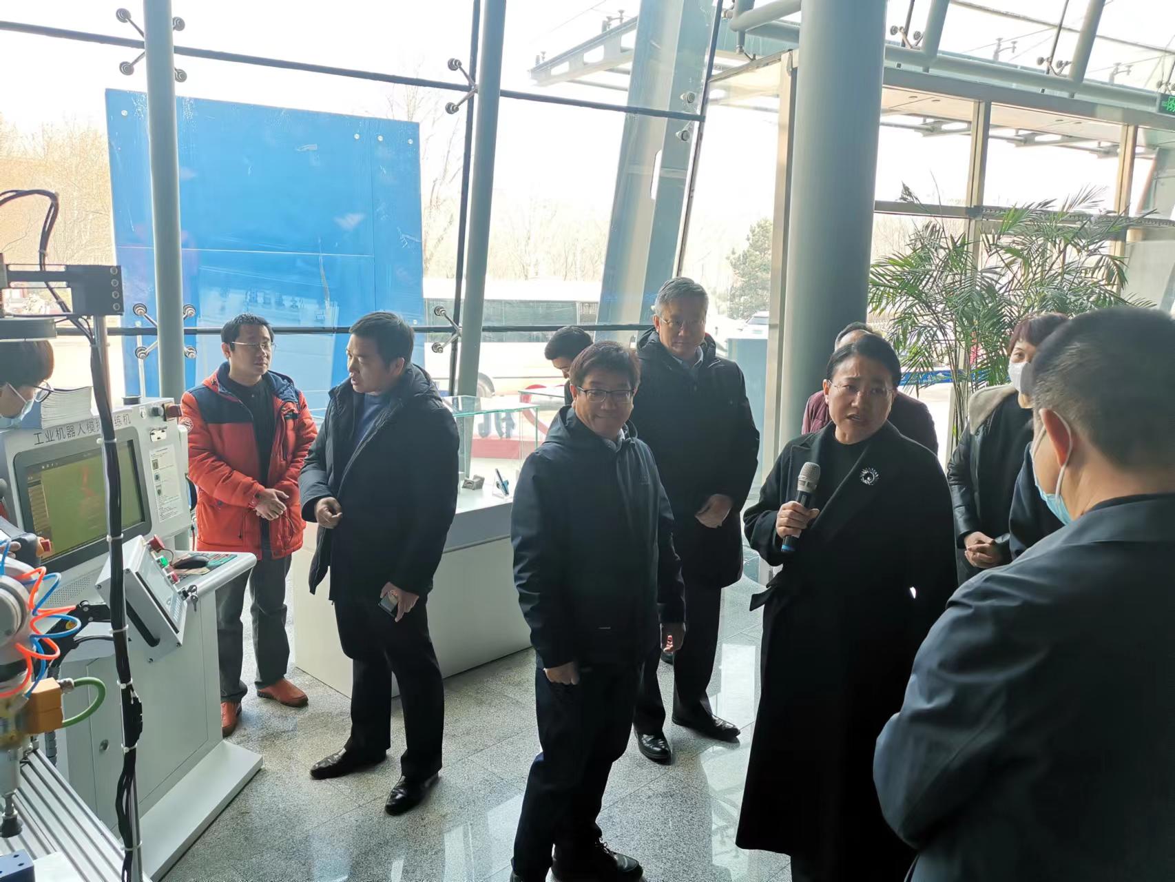 学院党委书记郝评,院长蔡玉俊(学校科研处处长)和副院长蔡兰蓉等人带领保定市考察调研团参观了学院近年来的突出成绩展、天职师大-天大精益数控系统与智能制造装备创新中心及学院教师自主研发的部分教学仪器与设备。