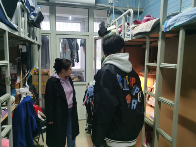学院党委副书记韩树明和辅导员、辅导员助理深入到学生宿舍逐一进行安全排查。了解学生学习生活情况,重点排查学生宿舍违规电器、违禁物品、安全隐患和环境卫生等问题,在检查过程中,耐心地向同学们集中宣讲消防安全的重要性,提醒同学们要加强宿舍学风建设,遵守宿舍管理规定,注意防火、防盗,做好宿舍卫生和个人卫生,增强自我保护意识。