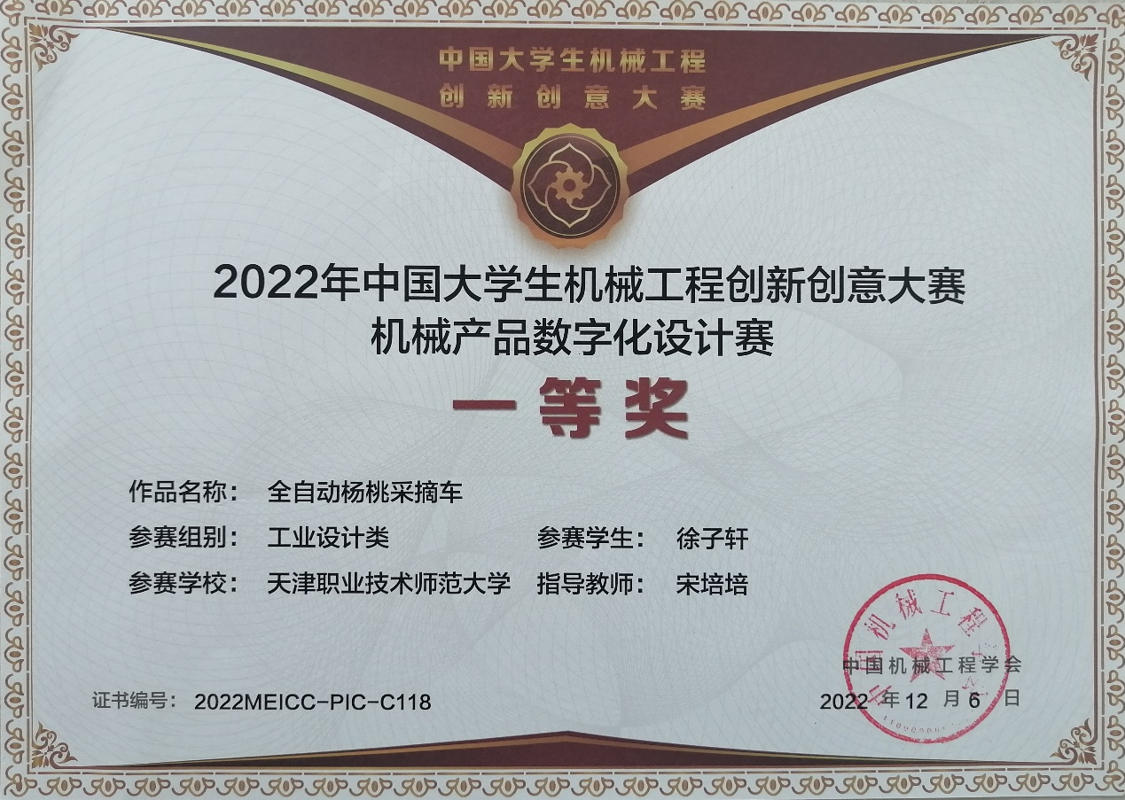 工业设计专业19级学生徐子轩在宋培培老师的指导下获得该赛项全国总决赛 一等奖。